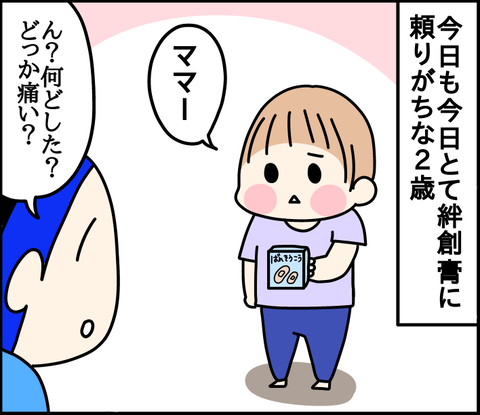 このブログは、私くま子・旦那(タカシ)娘(マルコ/中学生)長男(イチオ/小学生)次男(ミツオ/2歳半)の日常漫画です?腕のシワをキズだと思った2歳ミツオ···