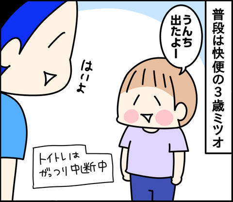 このブログは、私くま子・旦那(タカシ)娘(マルコ/中学生)長男(イチオ/小学生)次男(ミツオ/3歳7ヶ月)の日常漫画です?便秘のお話! 硬い便がフタをし···